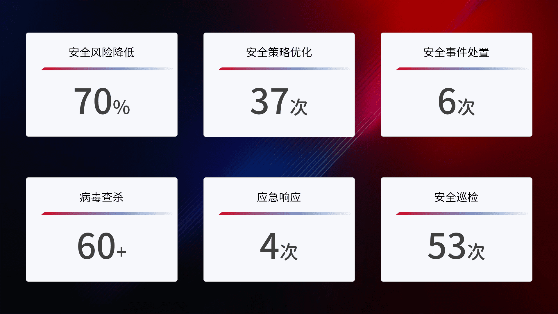 提供全面的安全事件报告体系,,包括处置报告、、周报、、季度和年度总结,,,,结合持续监控,,,帮助客户深入了解网络安全状况。。。。